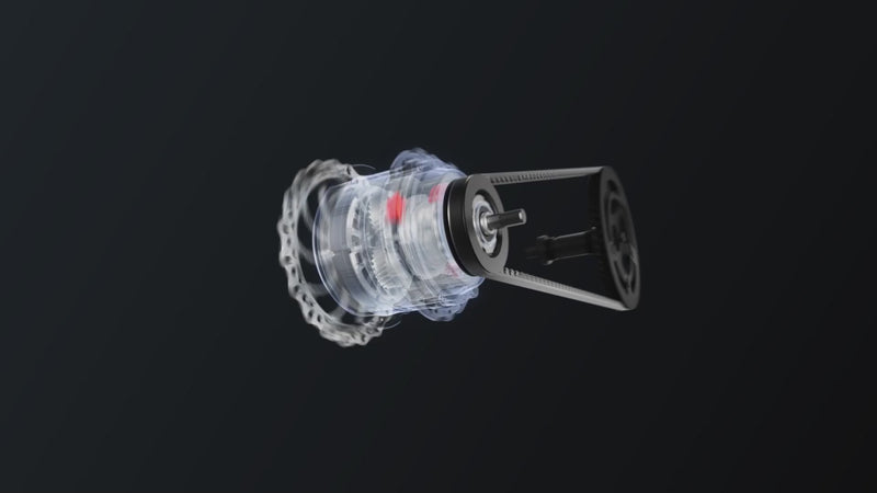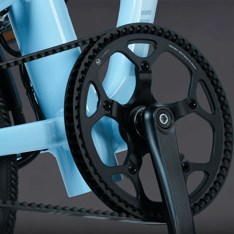 Transmissionen bruger kulfiberrem i stedet for kæde, hvilket betyder meget lavere vedligeholdelse, ingen olie og mindre støj.