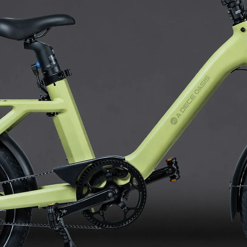 ADO Air One Pro adskiller sig fra mange konkurrenter ved at kombinere et næsten vedligeholdelsesfrit remtræk med hydrauliske skivebremser. Remtrækket kører støjsvagt, uden olie, uden rust og uden behov for jævnlige justeringer. Det giver en ren og problemfri køreoplevelse, og samtidig holder remmen betydeligt længere end en traditionel kæde.