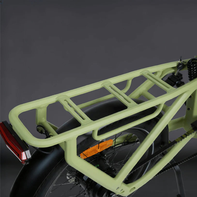 De 20” hjul giver både stabilitet og nem manøvrering i byen. Den er derfor oplagt til både bykørsel, indkøb, institutionsture og længere udflugter, hvor du ønsker en elcykel, der er både driftssikker og stærk nok til at klare hverdagen – også med last.