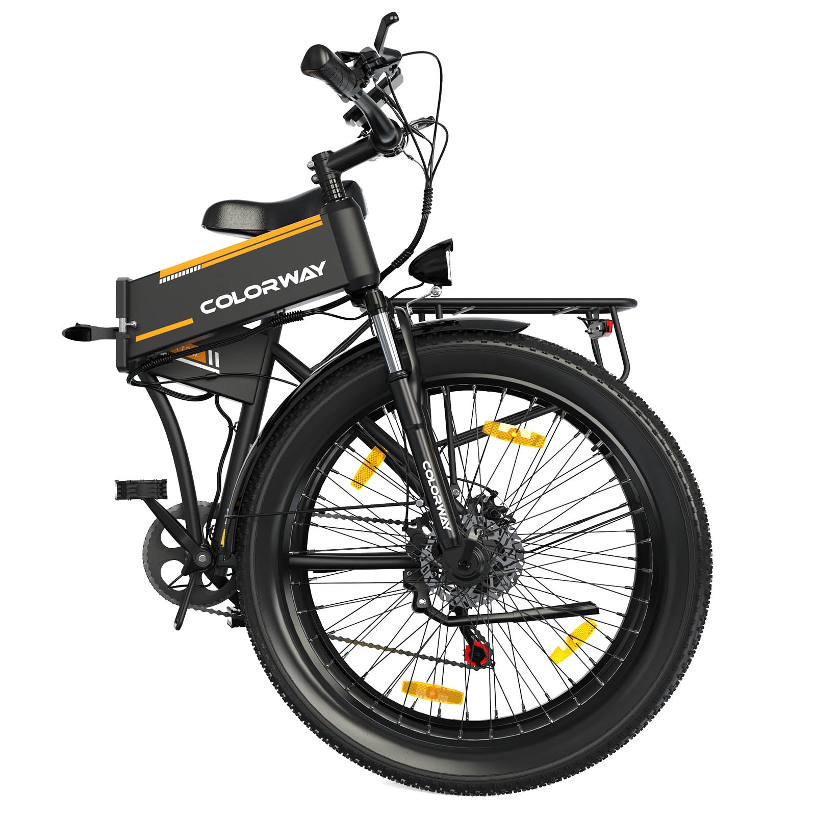 COLORWAY BK12MS kombinerer et stilfuldt udtryk med praktisk funktionalitet. Den er skabt til dig, der vil have en fleksibel elcykel med pladsbesparende foldemulighed og alligevel komfort og udsyn til længere ture. Det robuste aluminiumsstel og de brede dæk gør den både stilren og stabil, klar til hverdagsbrug, weekendtræf og byens rum.