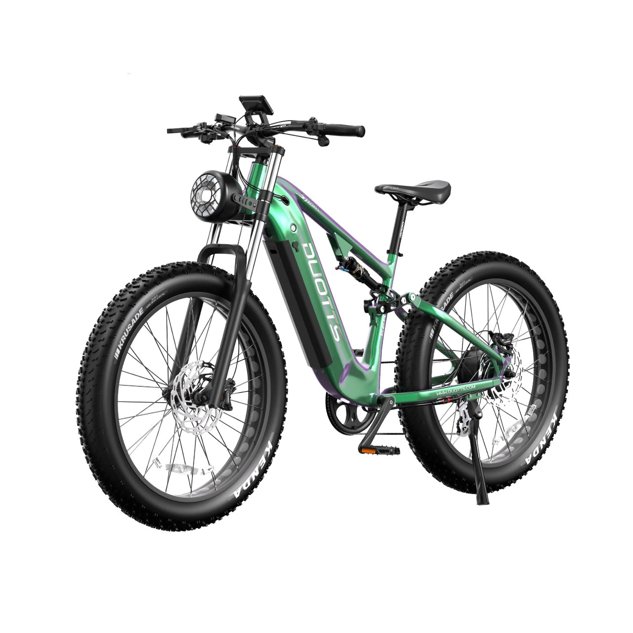 DUOTTS E26 er udstyret med en motor på 750W samt et kraftigt 48 V 20 Ah batteri, som giver dig mulighed for at tackle alt slags terræn. Med pedalassistance kan du opnå en rækkevidde på op til 120 km, afhængigt af køreforhold.