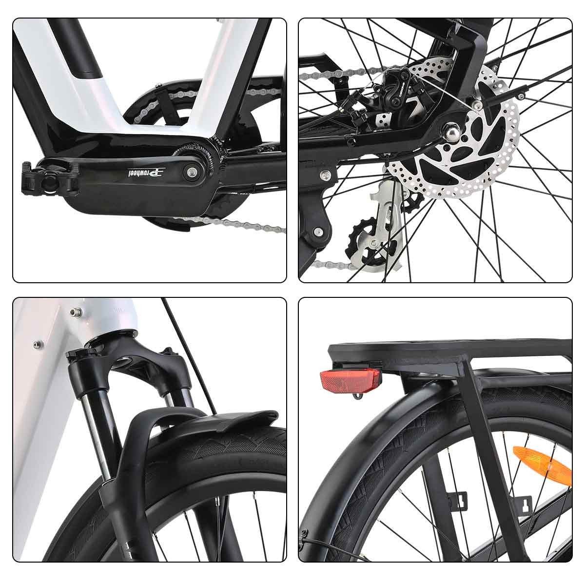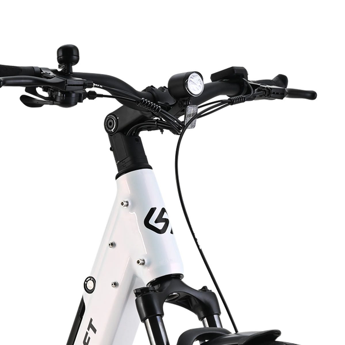 Med en oprejst og ergonomisk siddestilling får du maksimal komfort – også på længere strækninger. 28” hjul sikrer et jævnt tråd og god stabilitet, mens det moderne, hvide stel giver et elegant og professionelt udtryk.