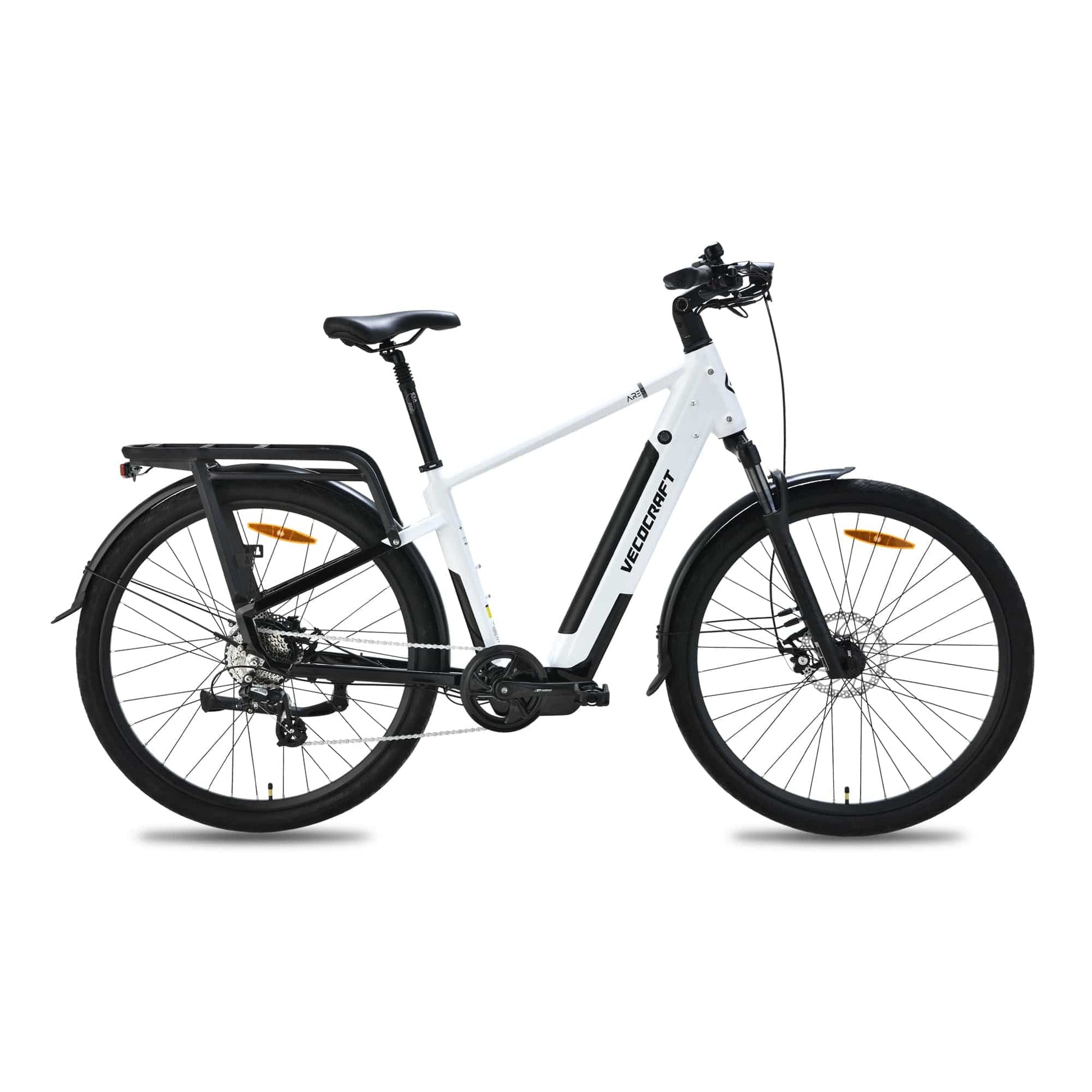 Vecocraft ARES er skabt til dig, der ønsker en alsidig elcykel med høj komfort, stærk motor og et flot design. Den elegante hvide farve og den solide aluminiumsramme gør den ideel til både bykørsel og længere ture. Uanset om du pendler til arbejde, kører weekendture eller vil have hjælp i hverdagen, leverer ARES en kombination af kraft, stabilitet og køreglæde.