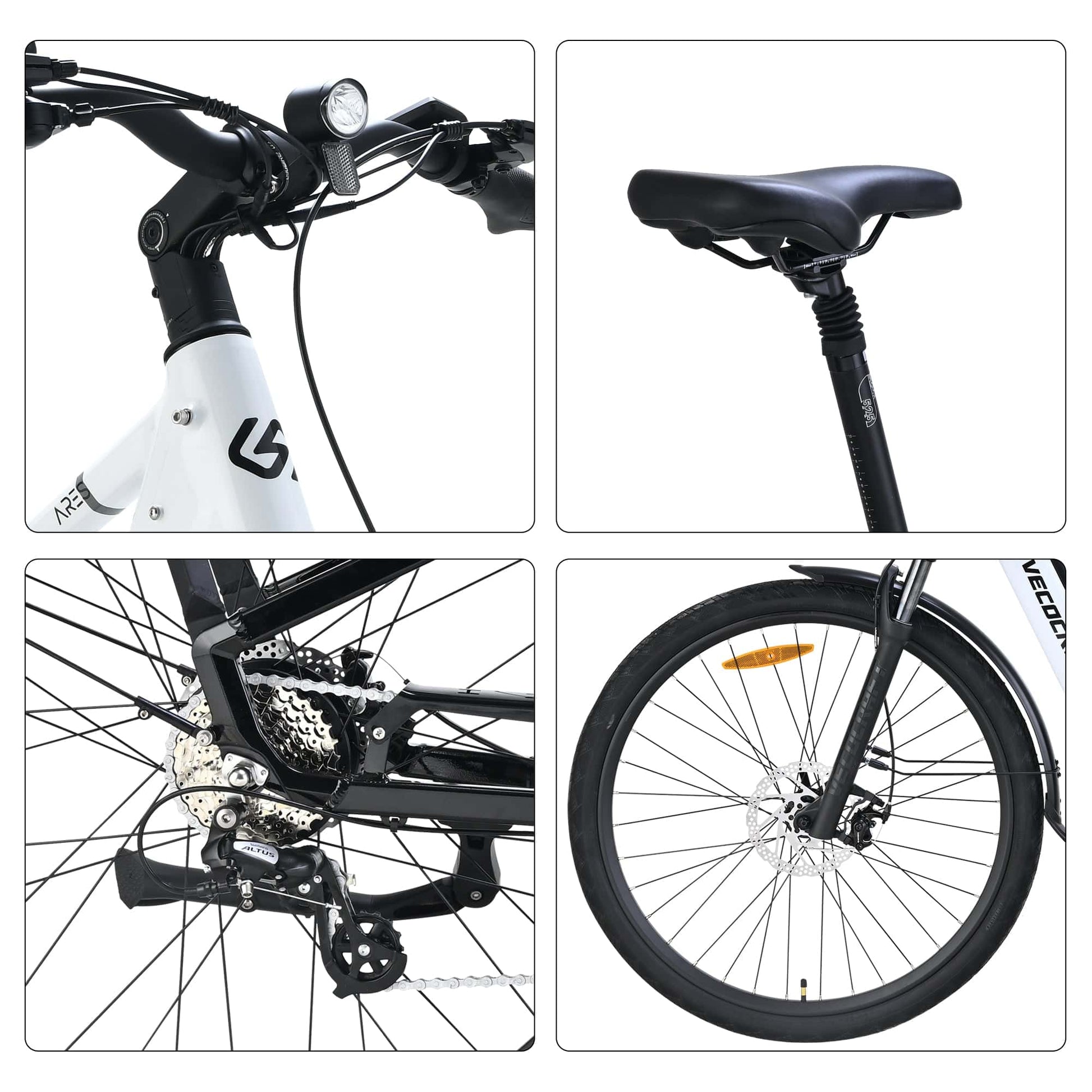Det præcise 7-trins gearsystem gør det nemt at justere tempo og modstand alt efter terræn – fra stejle bakker til flade cykelstier. Cyklen er desuden udstyret med integreret LED-lyssystem, reflekser og et tydeligt LCD-display, hvor du kan aflæse batteriniveau, hastighed, distance og assistniveau.