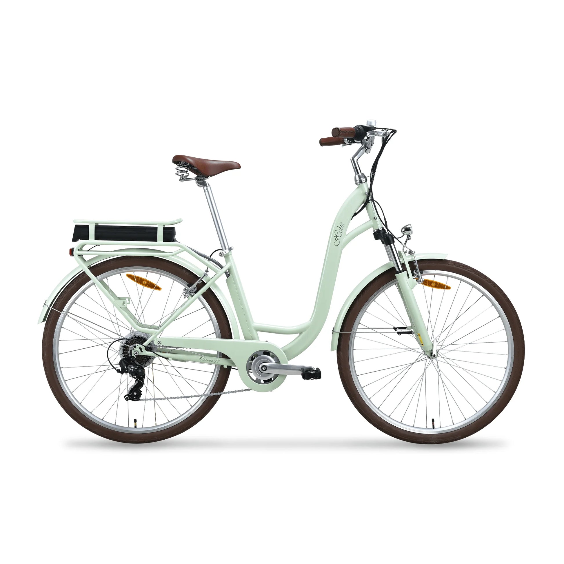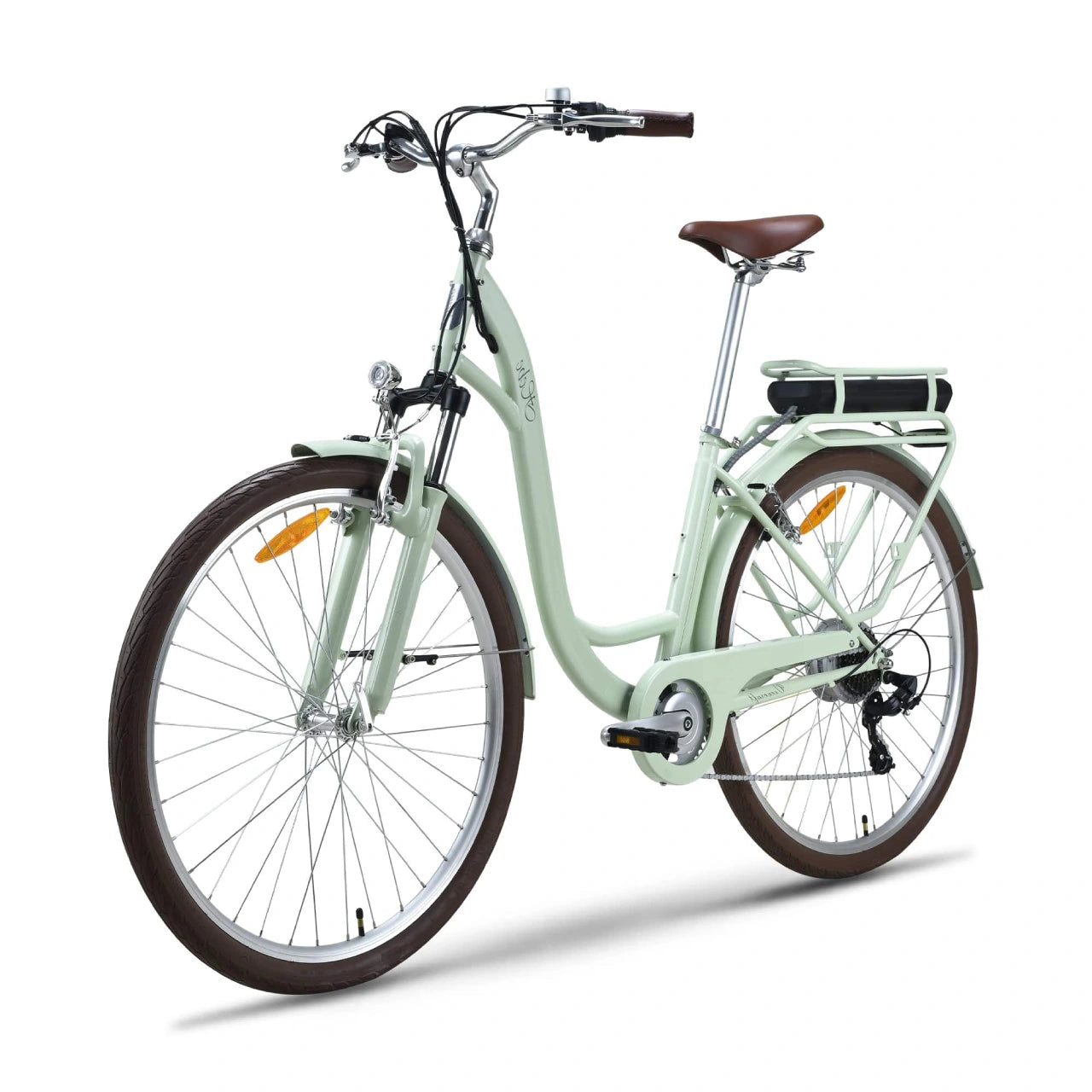 Leder du efter en elcykel, der kombinerer stil, komfort og funktionalitet til by- og pendlerturen? Så er Vecocraft HEBE det oplagte valg. Med sit elegante design i pink eller mintgrøn, 28″ hjul og lavt indstigningsramme (step through) er den særligt velegnet til kvinder, som ønsker en let og praktisk elcykel til hverdagsbrug og pendling. Ifølge producenten er den komfortabel, miljøvenlig og giver dig mulighed for nemt og uden at svede at nå dine mål.